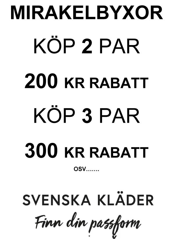 Ny vecka nya tag! Vi fortsätter vår ombyggnad och vi ber om ursäkt om det blir lite rörigt. Nu kommer den riktiga vårvärmen (har de lovat) och vi har plockat fram klänningar, shorts, capri samt sommarbyxorna. Du vet väl att i ger dig rabatt när du köper mer än 1 par mirakelbyxor? Lång, capri eller shorts. Bara att blanda som du vill. Och du! Du vet väl att vi mer än gärna beställer hem det du just vill ha om du inte finner det i butiken.